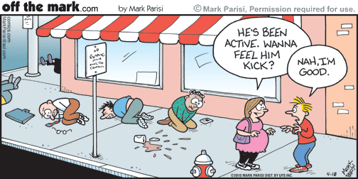 My baby is over 3 pounds, blah blah bag of oranges, sock full of nickles, etc. You get the idea. He enjoys blinking, sucking his thumb, long walks on the beach, and kicking me in the ribs and dislikes when mom tries to sleep and loud noises. At this point, I just sit on the couch and play “guess that body part sticking out of my belly” with Angel, who always looses because I’m not only a contestant, but also the judge. Poor guy.