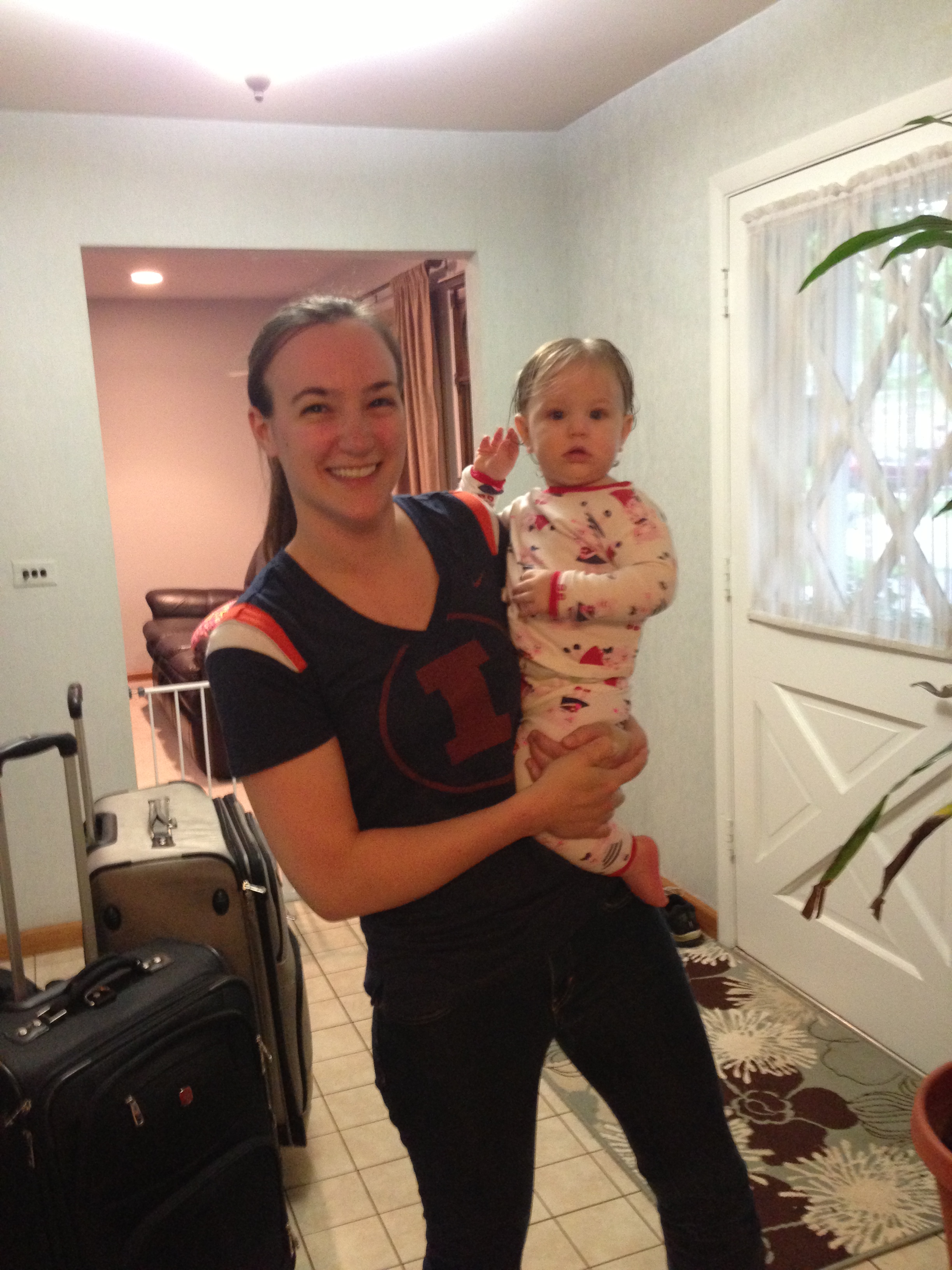 I have the world’s best traveling baby. Seriously. Our flight from Chicago took off at 7, which is 8pm in Michigan and only 30 minutes before bed time. but my awesome baby just curled up against me and was sound asleep before take off. Since the flight wasn’t full and the seat next to me was open I laid him down on it and cashed in some drink coupons when the flight attendant came by. My traveling companions had the same luck with Hailey and the three of us enjoyed some adult beverages for 3 hours. Meanwhile, it seemed like all of the other parents were having troubles with their little ones and probably cursing the three of us and our perfect children and beers. But I proudly (and lovingly) stared at my little munchkin and high-fived myself for not being that mom.