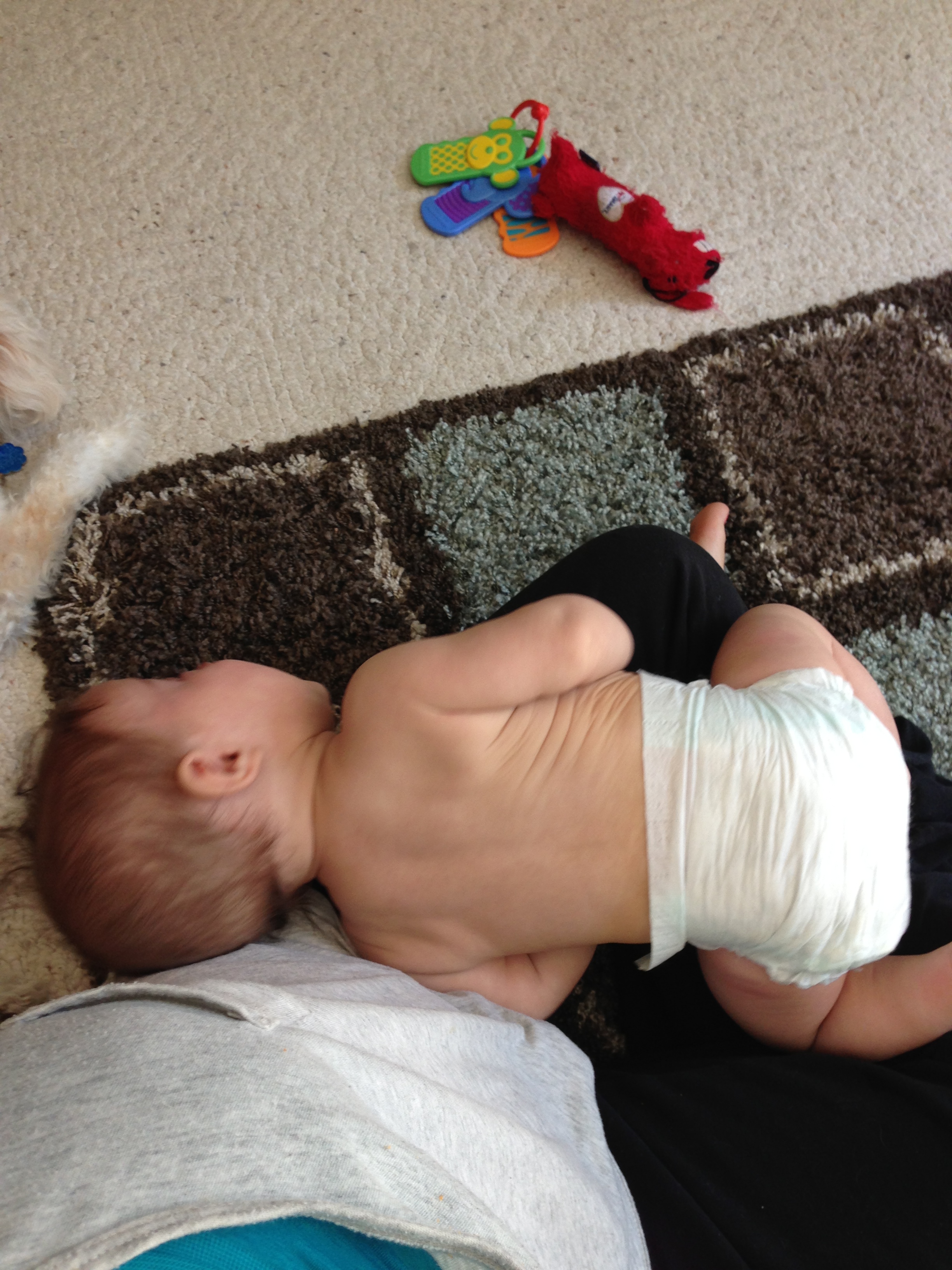 Today, to celebrate getting the baby home without bursting into tears myself, I spent all day in my pajamas playing with Lucas on the floor and feeding him Tylenol and boob every few hours. If only babies could be born with a full set of teeth to spare their parents what I imagine are a few hard nights ahead of me….