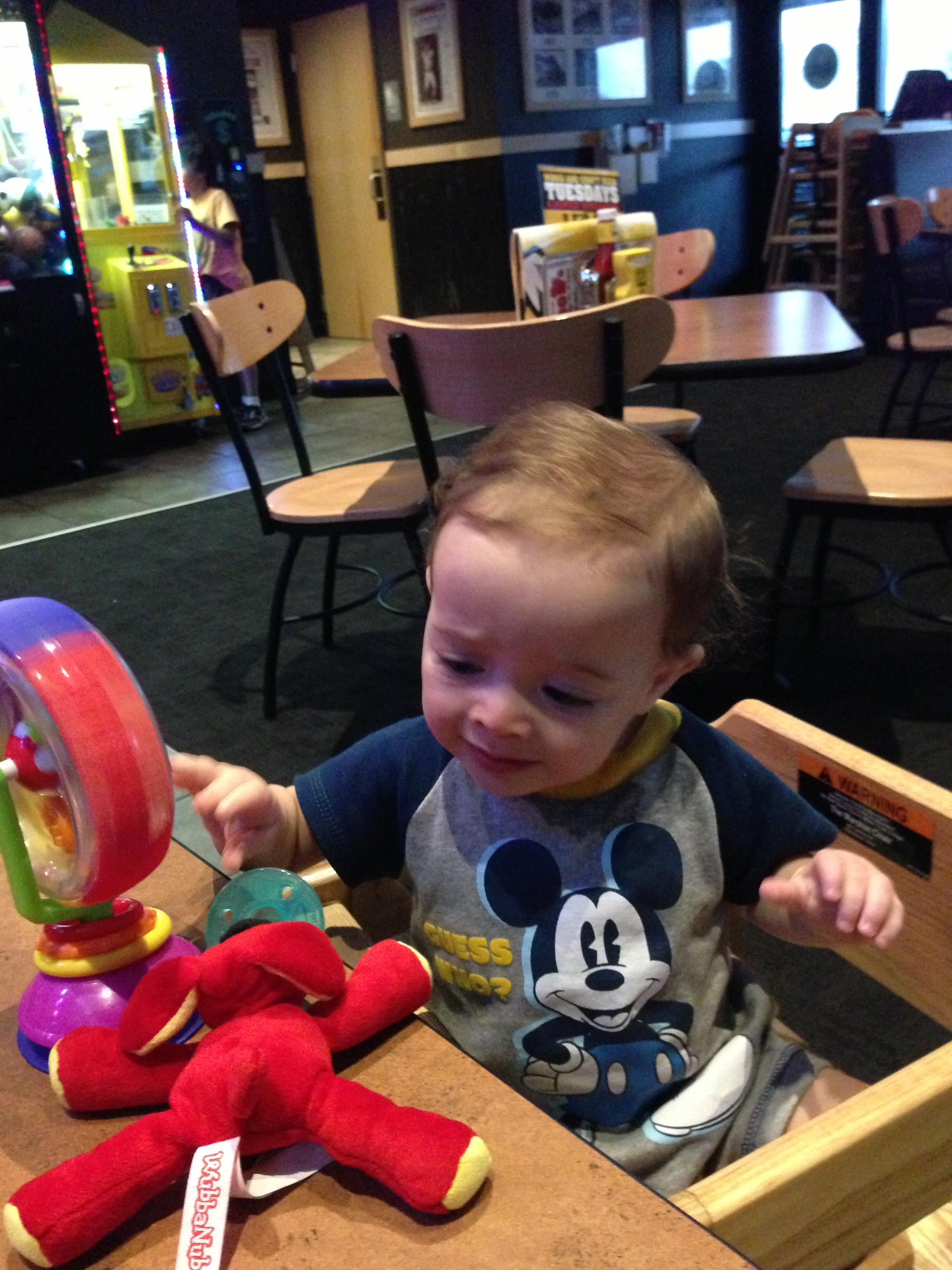 I miss the days that Lucas was in a car seat and would just sleep when we took him to dinner with us. Those days are quickly becoming a faint memory. If I leave him in his car seat now he flips out on me and when he’s in a high chair or cart that really only lasts about 30 seconds before he wants to be held or to eat or to be entertained. It really makes things more difficult and our restaurant choices down to just loud bars with high chairs (see: Buffalo Wild Wings). I used to take him to dinner, set him on a seat, and never hear a peep out of him thinking that I didn’t understand why all of these parents said it was so hard to go out with children. And then Lucas learned how to scream and I started carrying around a plethora of toys in my diaper bag and cringing at the thought of being in quiet places.