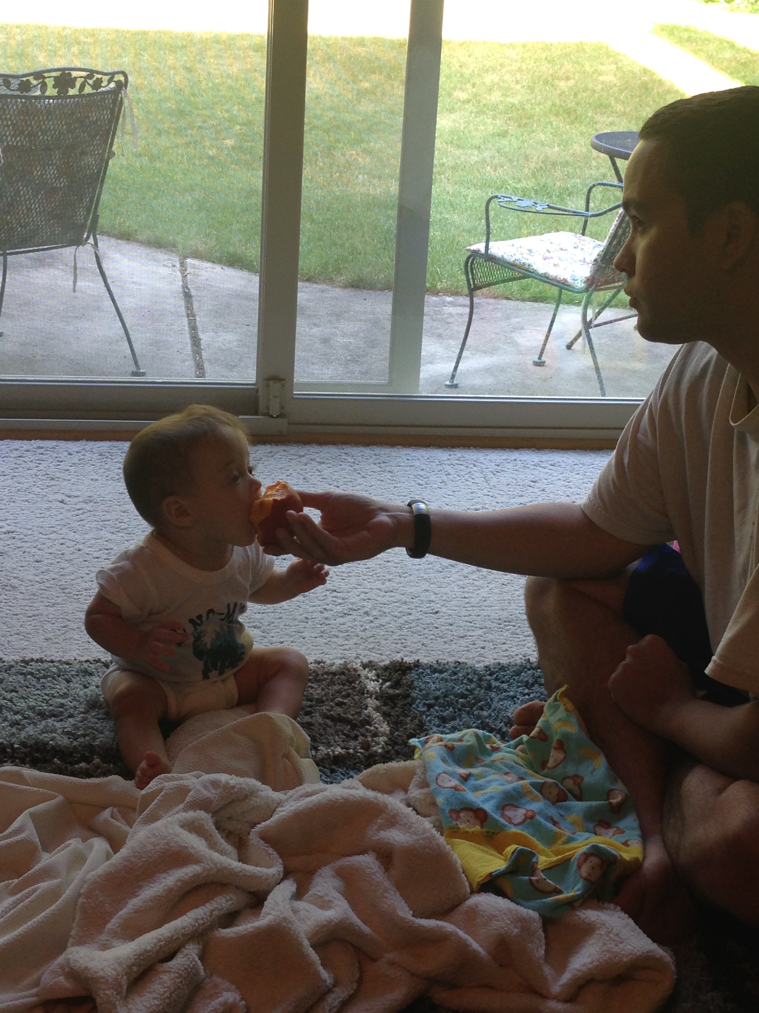 We’re in the land of solid foods. He wants to eat the peaches right out of our hands
