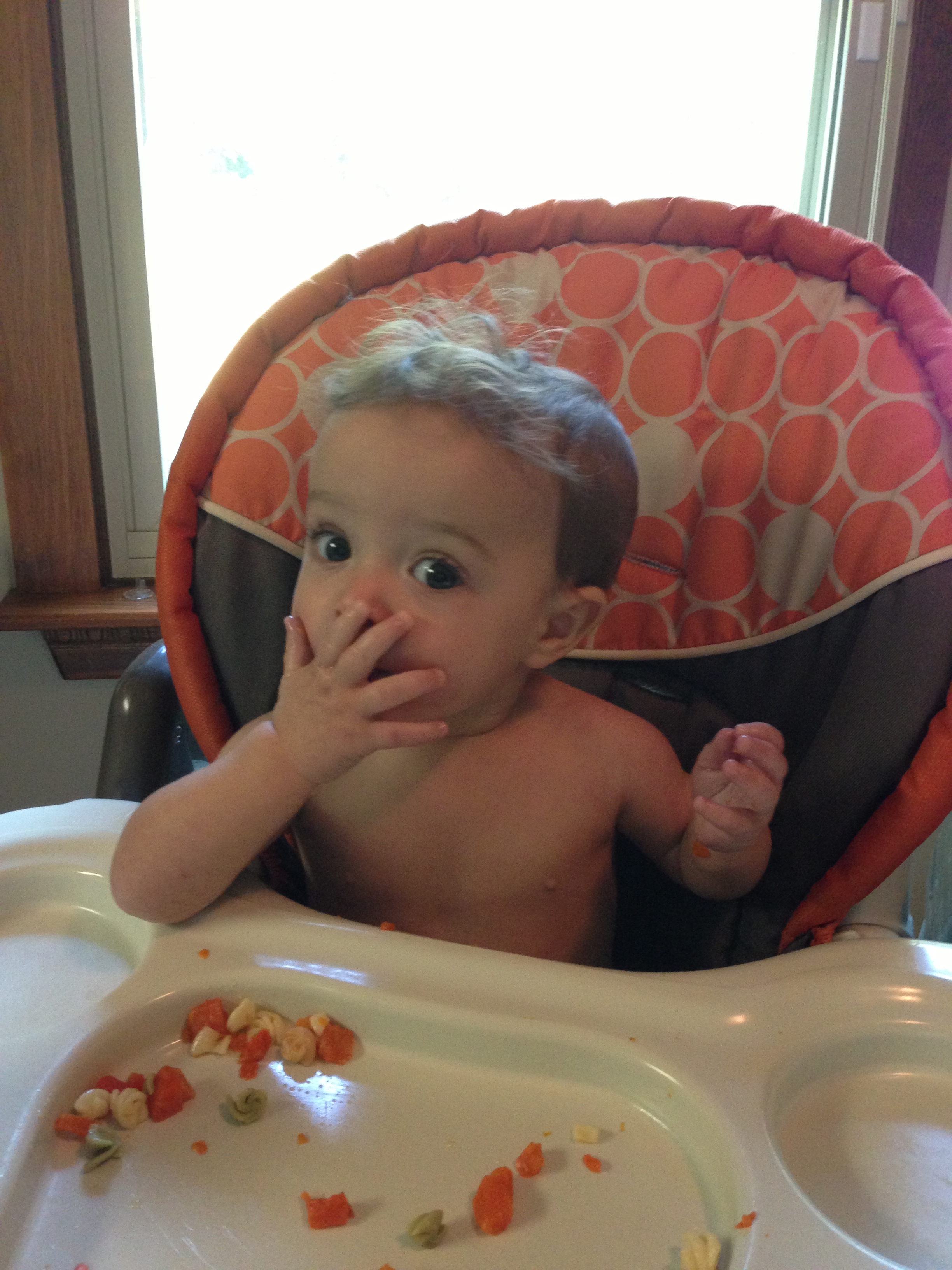 Lucas turned 9 months old! We celebrated with his first “big boy” dinner of carrots, pasta, and a sippy cup. I’m not sure if I was more proud of him for turning 9 months old, or myself for keeping him happy and healthy for 9 months!