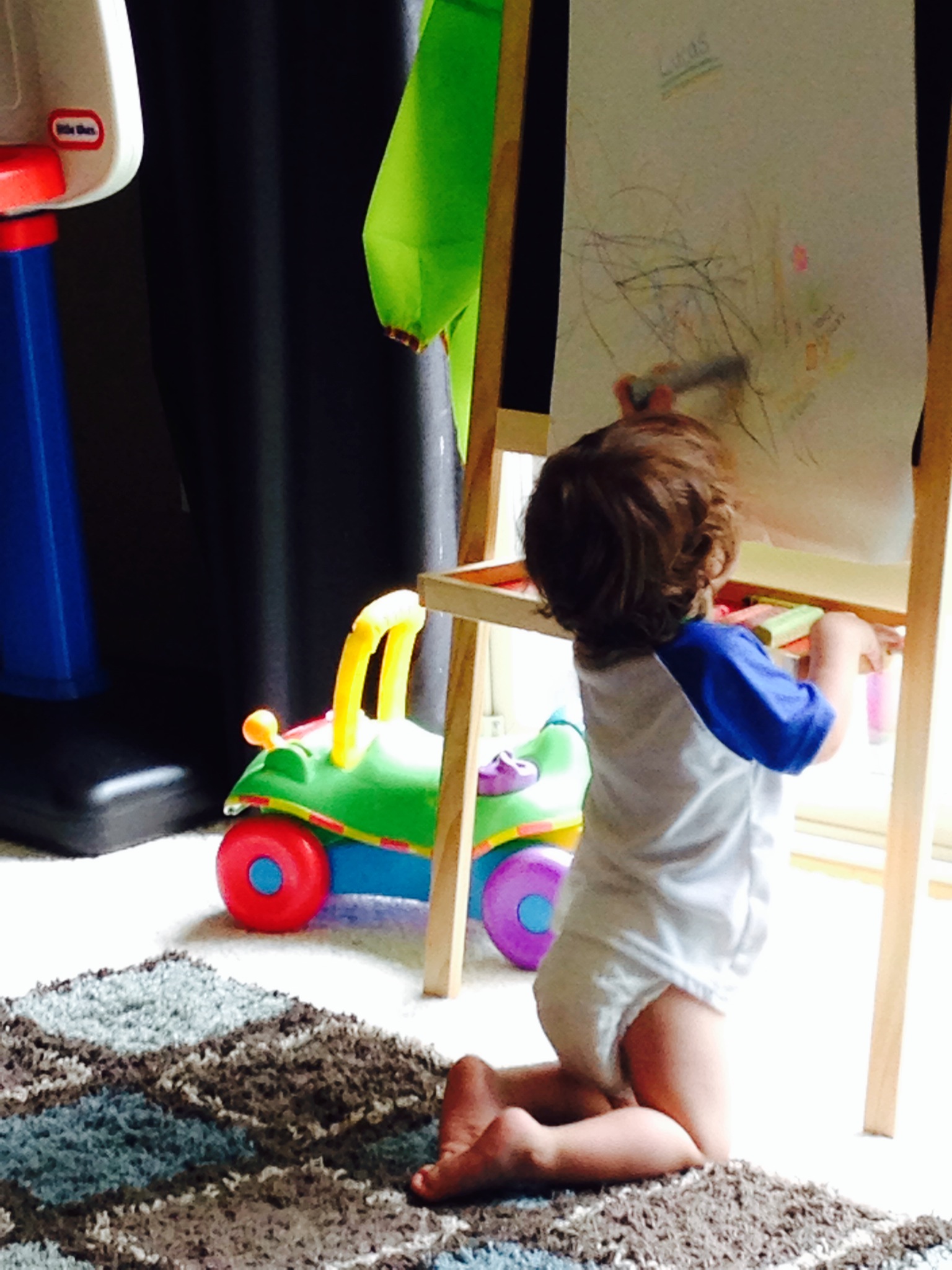 Day 49: Lucas wanting to color with me. He takes a crayon for himself, hands one to me, and says “help!” Gladly, munchkin.