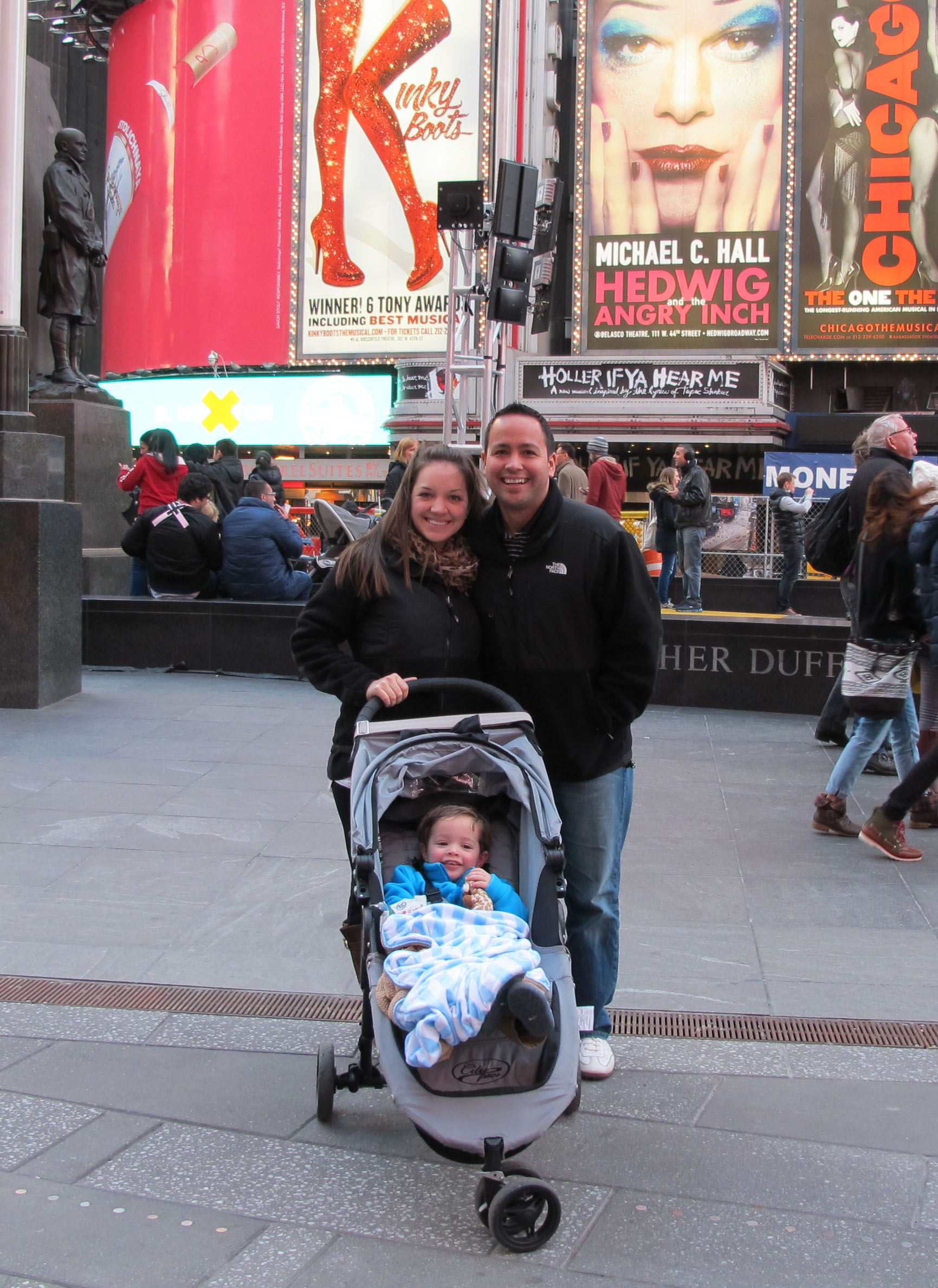In October, we took our adorable munchkin to New York City for my first trip to the Big Apple. I was a ball of excitement and smiles because I hear so much about New York but never had the opportunity to go so when Angel’s Aunt and Uncle offered to take us I didn’t even have to think- YES YES YES! I love my husband, kid, and dog, but if I went to NYC for the first time before I had them all I probably would have tried to move there. Love that city but it is NOT conducive to strollers and toddlers who don’t understand that they can’t cross the street yet and you can’t carry them 80 blocks. What an awesome way to spend our 4th wedding anniversary, though!