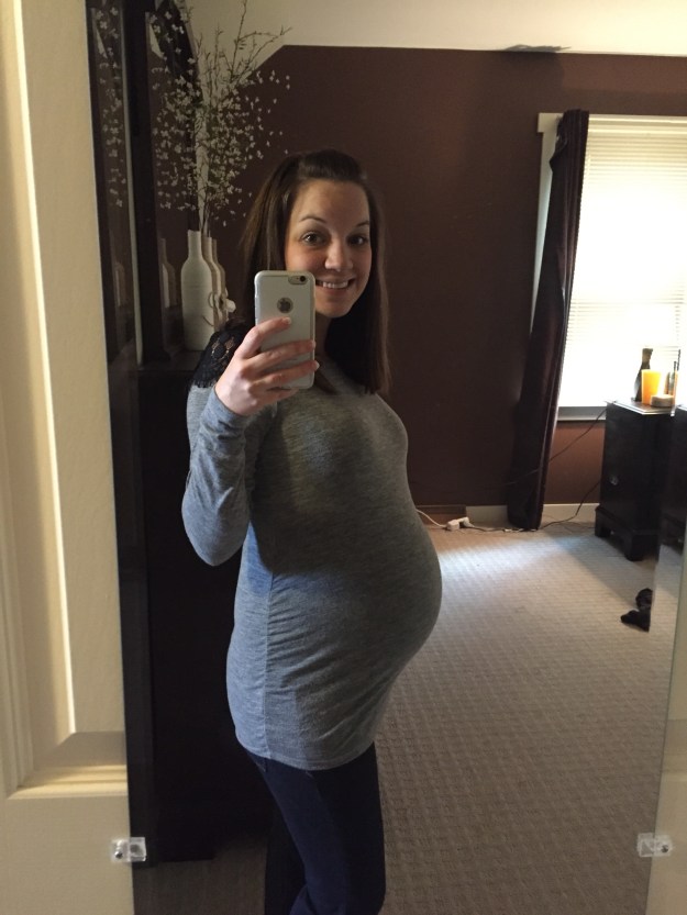 It takes a strong woman to be pregnant. It’s a lot of physical and emotional changes and you’re supposed to walk around for 9 months pretending to be happy about it all. Most days I am because I can keep my mind on the end goal here, but yesterday I hit the wall. On Tuesday night I was up all night learning a valuable lesson in generic Tums. I finally got comfortable downstairs in the recliner when through the monitor came a tiny voice from the house 2 year old calling for me and crying. I went up to check on him and he just wanted to cuddle with me. I tried the rocking chair and he wouldn’t fall back asleep so a few hours after attempting, I tried to lay in his bed with him but it made me sick. So I put him in our bed hoping that Daddy could do the trick but he was apparently knew the difference between generic Mommy and the real boobs. I did what any mom would do: I laid in bed with my little man so that he would sleep, even though I then spent all night sick. Somewhere in there the acid reflux started turning into an upset stomach and I got out of bed Wednesday with the stomach bug that’s plagued my house. So yesterday I’m bound to the recliner all day on a liquid diet and trying not to move. It just kept getting worse and by bedtime I was laying on the floor in the hall outside of Lucas’ room with a pinched nerve and pain that was taking my breath away. Cue hormonal tears. I’m over it. I don’t want to share my body anymore. I’m tired, I want to sleep on my back, I want to go an hour without having to pee, I want to wear my old clothes again, I could use a glass of wine after a bad day, I hate the taste of Tums, but more than anything I just wanted to be able to get off of the floor on my own and I couldn’t. Third trimester greeted me with a big, open-palmed, slap in the face and I’m calling bullshit on the whole thing. Pregnancy sucks.