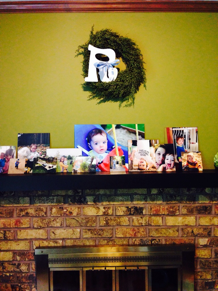 I finished crafting my mantle. Disregard the wall color, soooo not my choice and clearly doesn’t match any decor in our house. Mmm…. Pea soup.