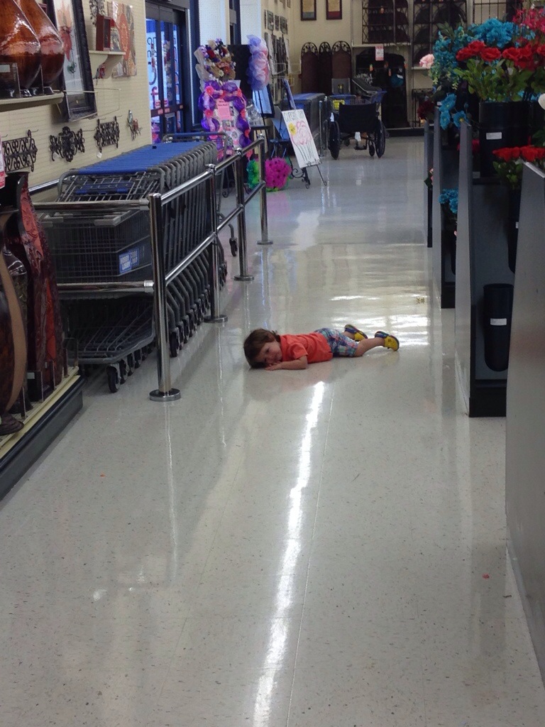 For all of you judgmental folks who are giving me looks like I need to peel my kid off of the grocery store floor because this is more my fault than his or all of you readers who have never had a toddler and are sitting there thinking “my kid would never do that.” Let me set the record straight: Yes, yes they will. But I promise to not give you the same looks that you’re giving me. I’ll instead mask my disgust with your toddler by looking at my well behaved child and saying “Oh, I’m so lucky that you never did that!”