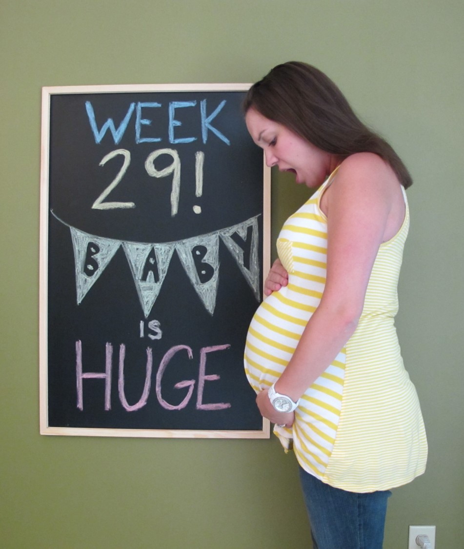 I’ve missed week 28 and nearly missed week 29 as well.  This pregnancy is just flying by and I’m running out of time.  I’m taking naps nearly every day now and it’s really sucking up my time to continue unpacking and cleaning the baby stuff from the basement.  For a while there I was knocking items off of my list faster than I was adding them, but that is not the case any more.  Mom, want to come back?
