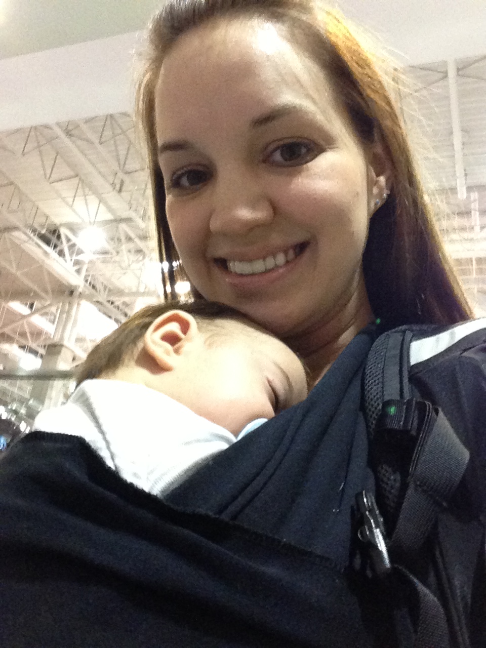 Lucas and I were having a great time in our hour layover. He was sound asleep and I was debating when I should wake him up and give him the bottle that I made because nursing when I’m alone in public I would have to charge admission to to pay the bail when I was arrested for public nudity. And then they announced that our flight was delayed by 2 hours and I called Delta every name in the book (in my head, naturally). Lucas must read my mind because this is the time that he decided to have a public melt down. So I took out the bottle, tried to feed him, and wouldn’t you guess that he chose this time to decide he didn’t want to drink from a bottle anymore. I kept trying because it’s not like I could just whip out a boob there at the gate, but Lucas kept screaming like I was killing him and everyone started looking at me and thinking “Oh my God, I hope I’m not sitting net to her.” Screw you all, seriously. He’s a very good child current tantrum aside.