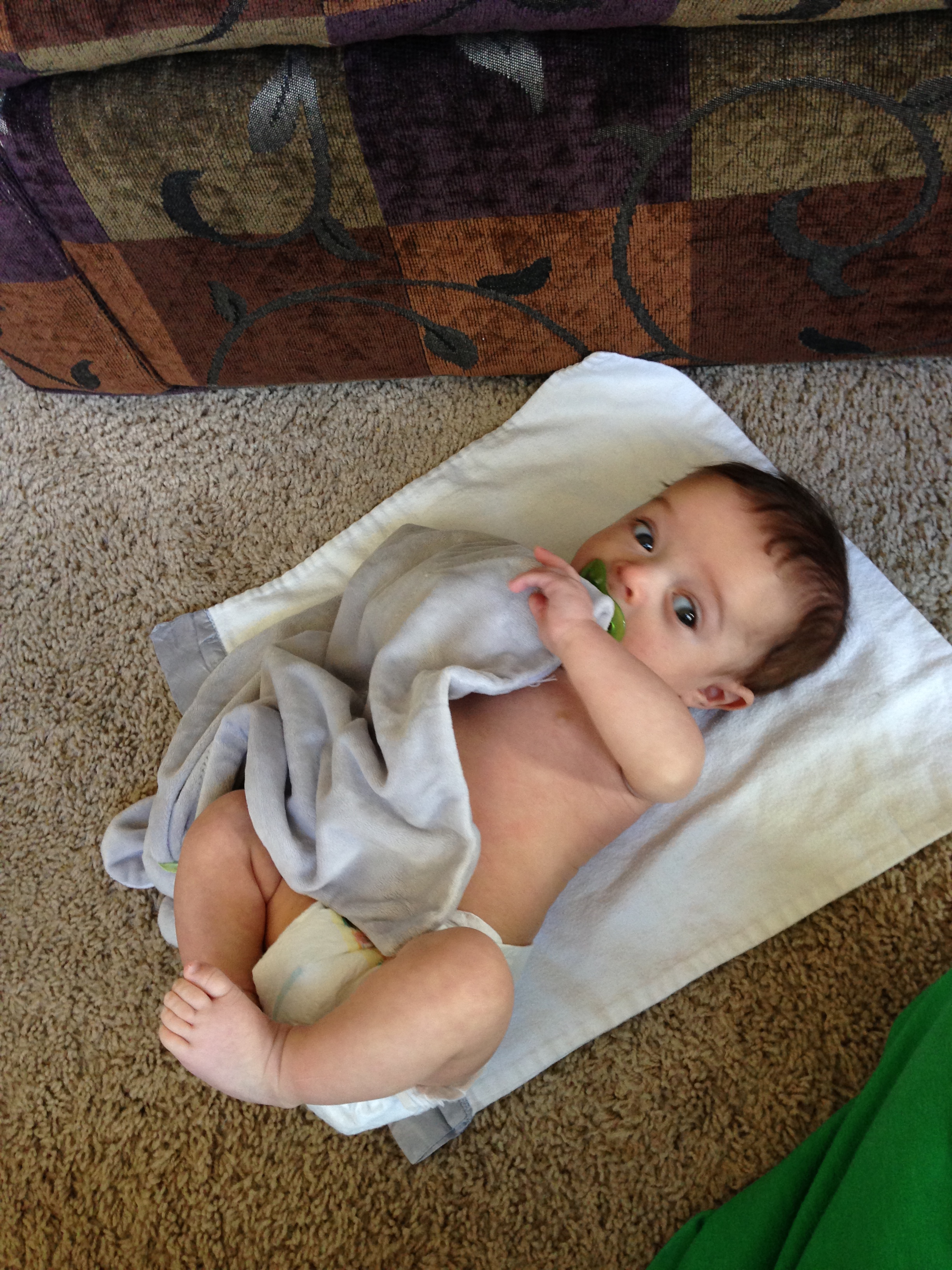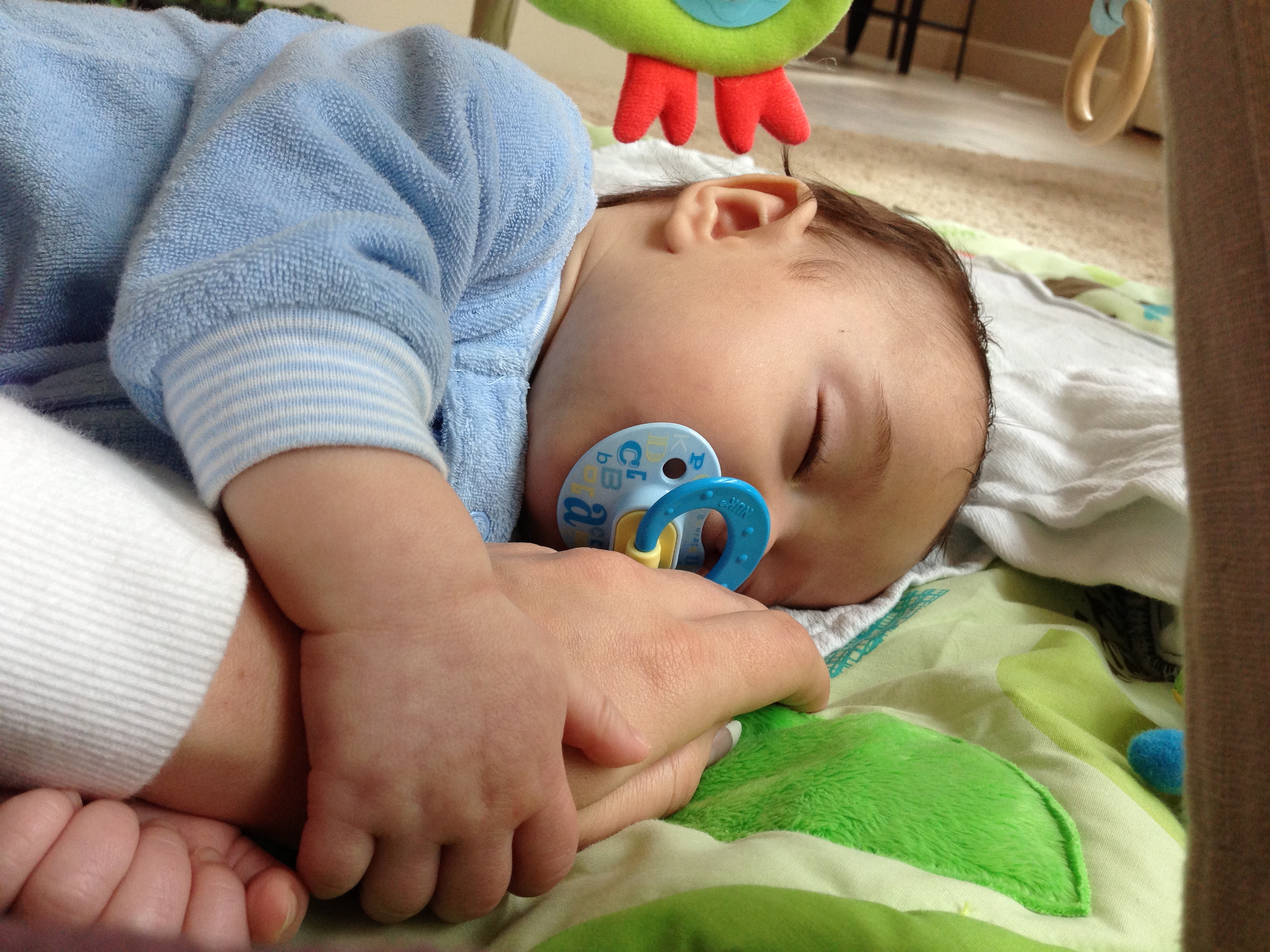 Since this adorable trend can’t last forever, I started replacing my hand with a security blanket and it seems to do the trick: