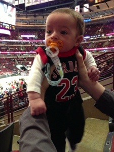 He got his shots at his 4 month well visit at the doctor so we spent all day Monday in our jammies cuddling in the big bed and watching the DVR and taking baby Tylenol every 4 hours (a little but for baby, a lot a bit for mommy).